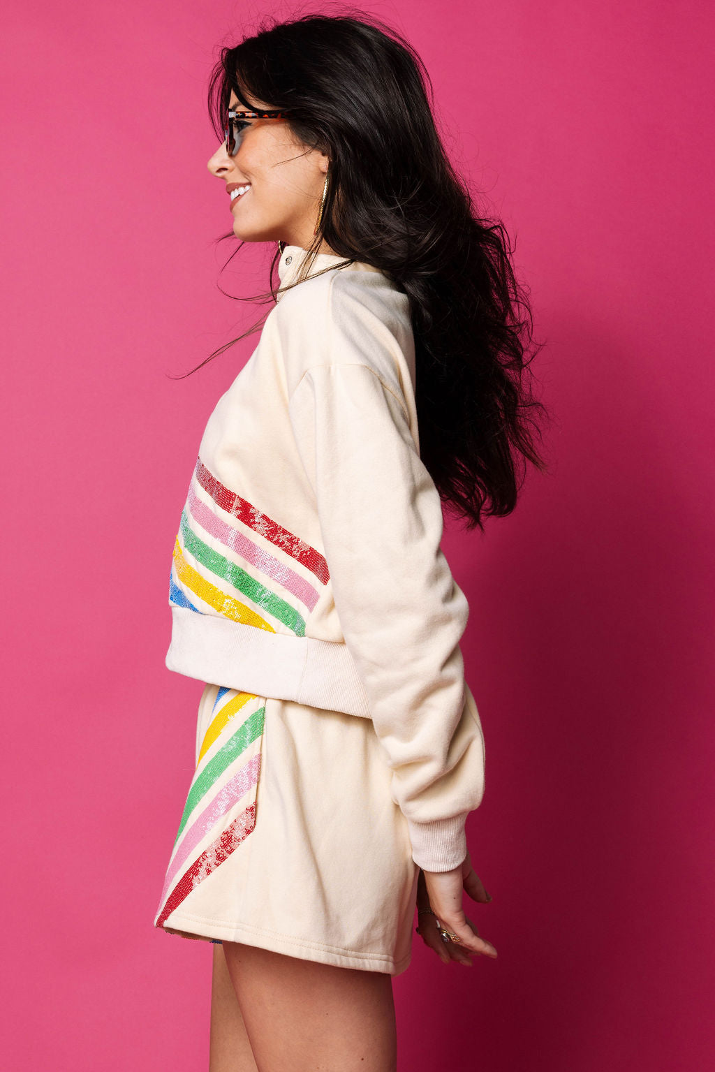 Get ready to rock a retro look this fall with our Beige Multi Stripe Henley Shorts. These funky shorts are perfect for transitioning into the cooler weather and can be easily paired with our matching sweatshirt for a complete outfit. So go ahead. add some flair to your wardrobe (and your life) with these must-have shorts!