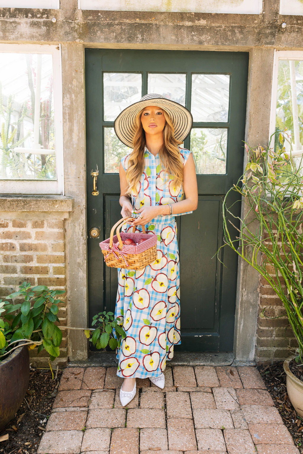 Blue Plaid Cotton Apple Slice Button Up Tank