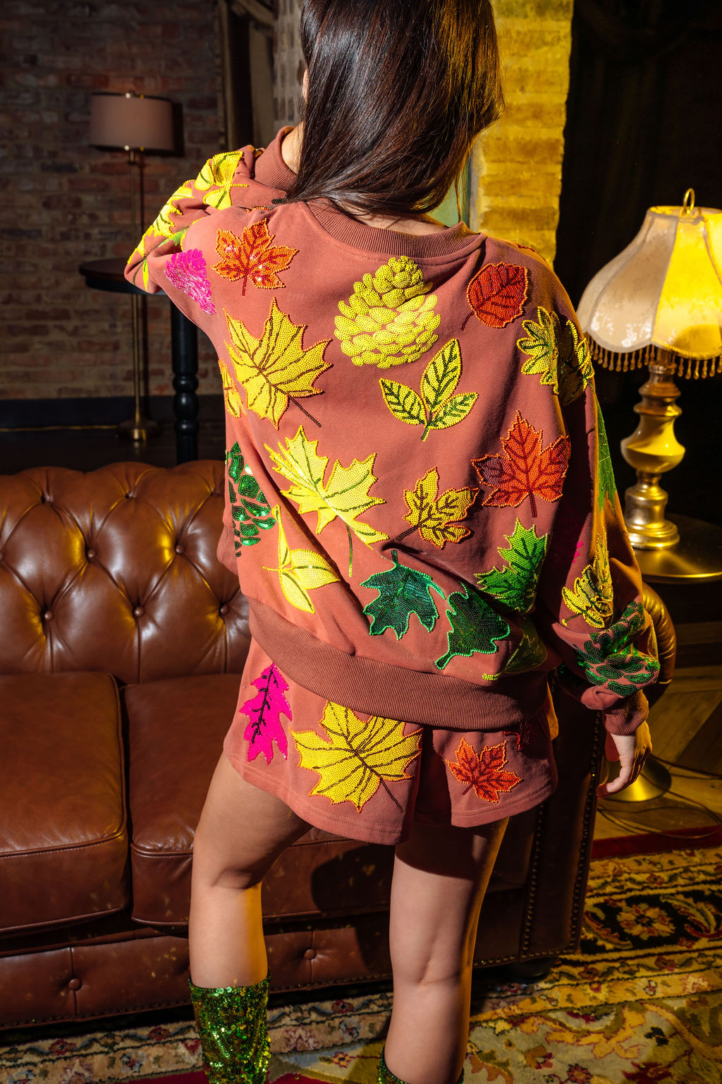 Get ready for the fall season with our Brown Fall Leaves Shorts! These shorts will give you the perfect fall look. Pair it with our matching sweatshirt for a complete and stylish outfit. Don't miss out on this cozy must-have! (Autumn vibes included)