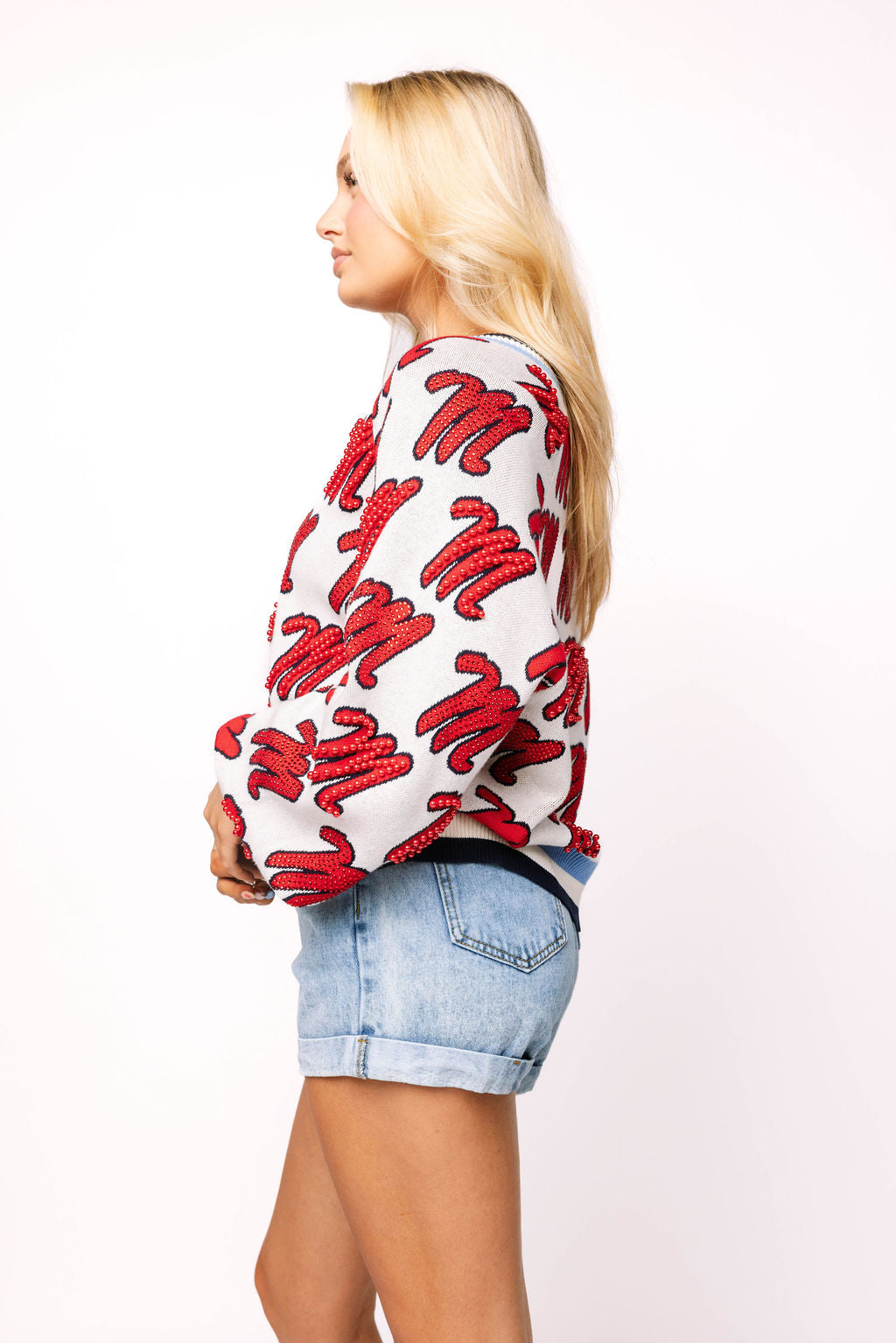 Licensed Ole Miss Knit In Mascot Rhinestone Cardigan
